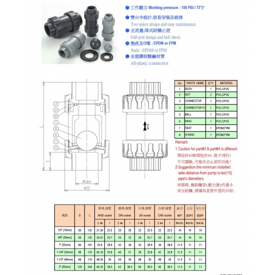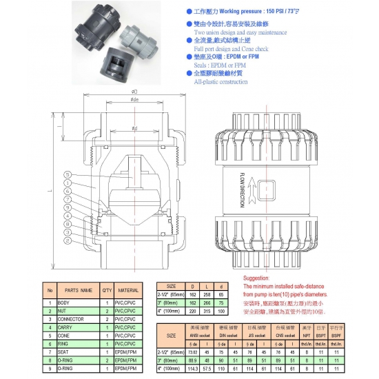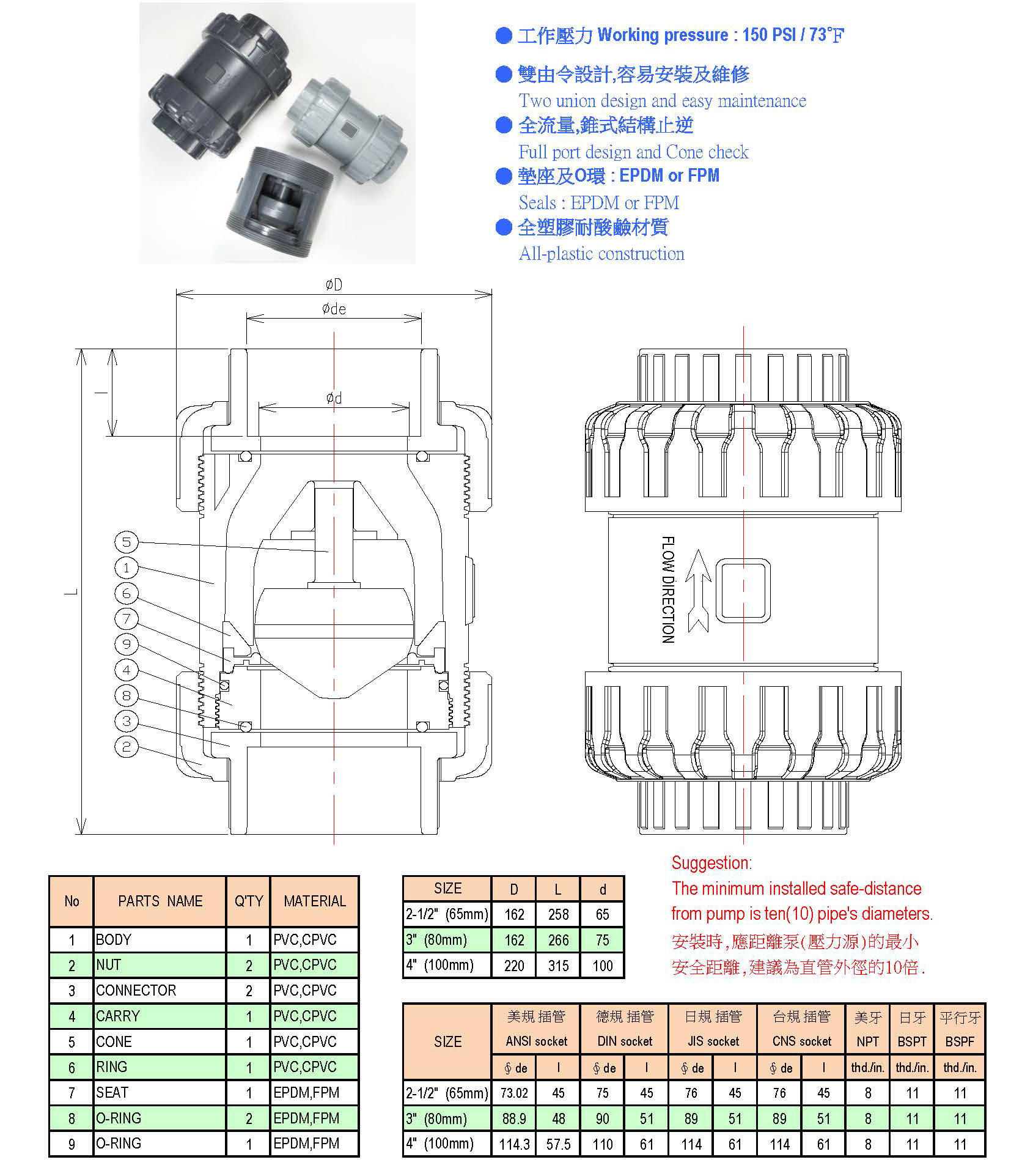 適用於水製程系統以及一般民生相關之輸送排水系統(大樓、工廠、環境工程廢水處理、 工業應用、船舶設備、游泳池、農魚業灌溉等。)