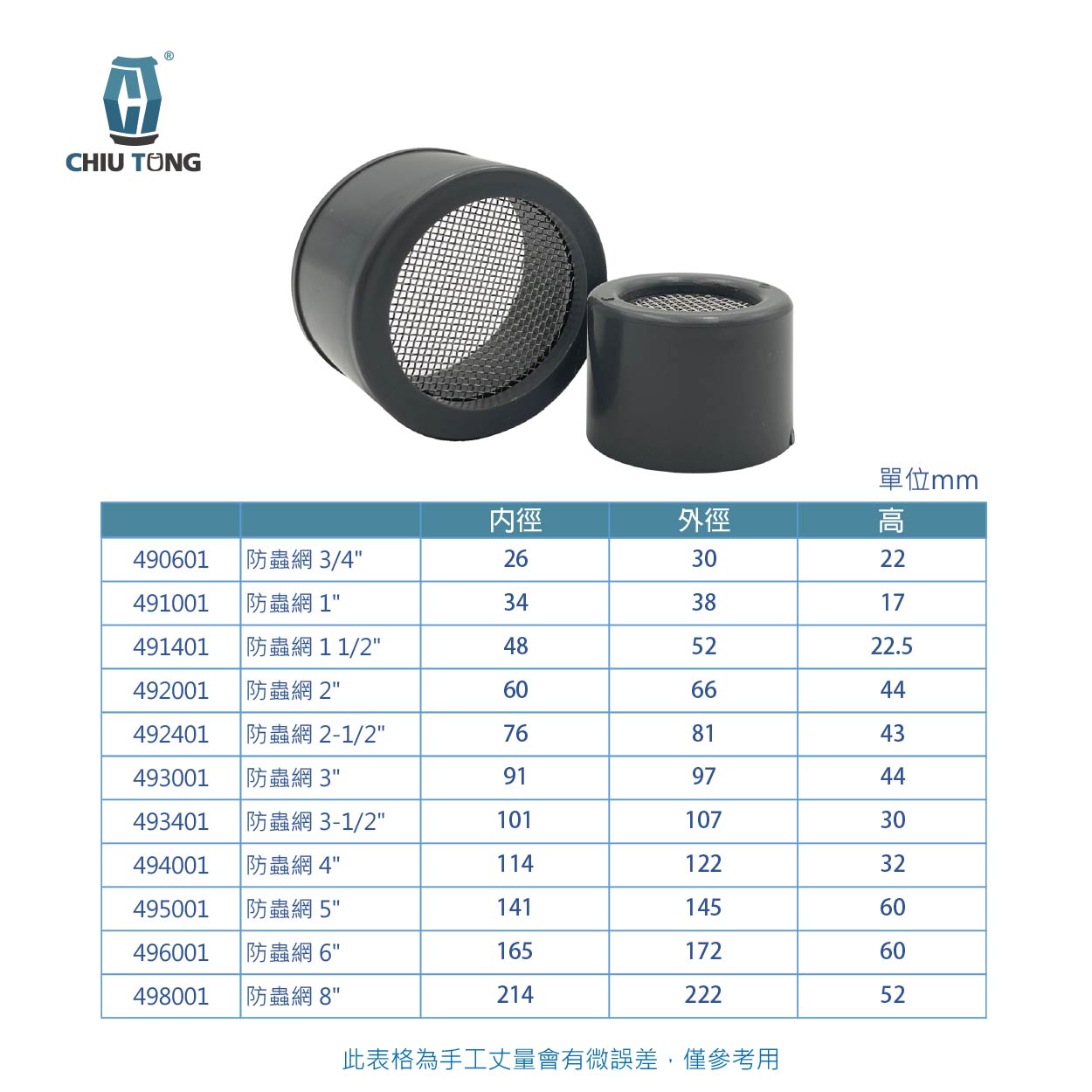 內徑不含左右兩邊防蟲網蓋厚度,手工丈量會有少許落差,請多見諒。