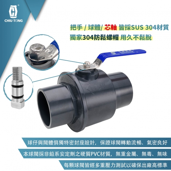 本球閥採非鉛系安定劑之硬質PVC材質,無重金屬、無毒、無味。