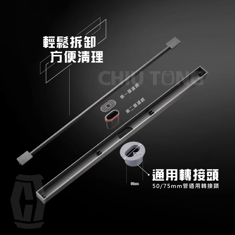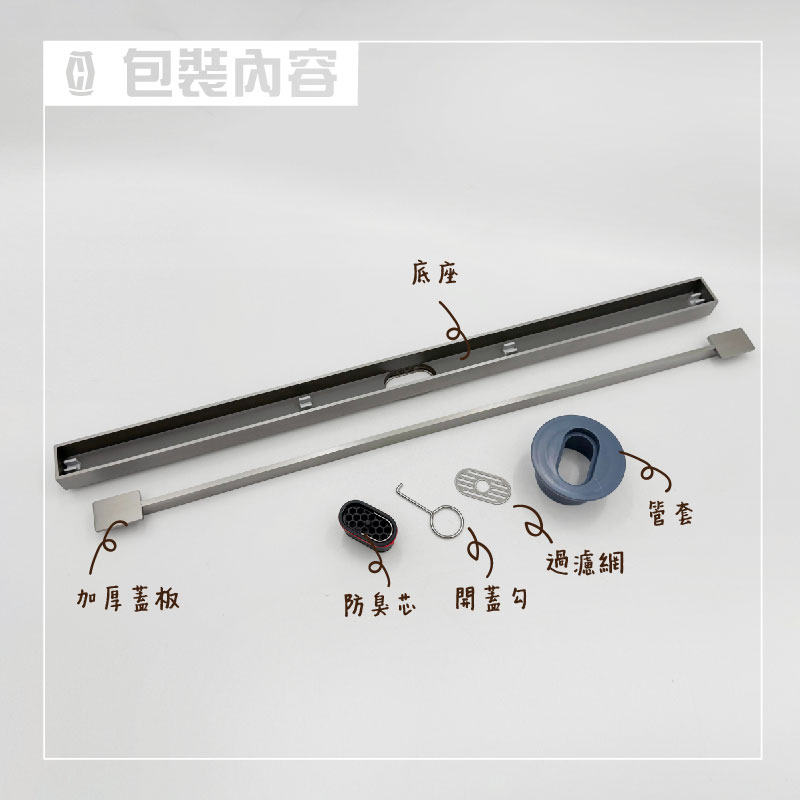【711212】304不鏽鋼極簡線形地漏-拉絲/槍灰