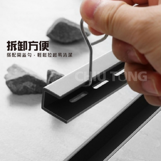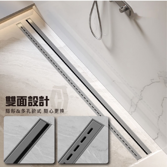 【711218】304不鏽鋼極簡多孔隱形兩用線形地漏-拉絲/槍灰