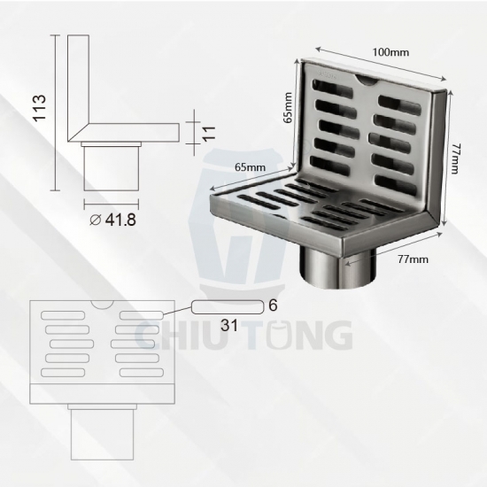 【711300】304不銹鋼牆腳側排地漏(適用50管)