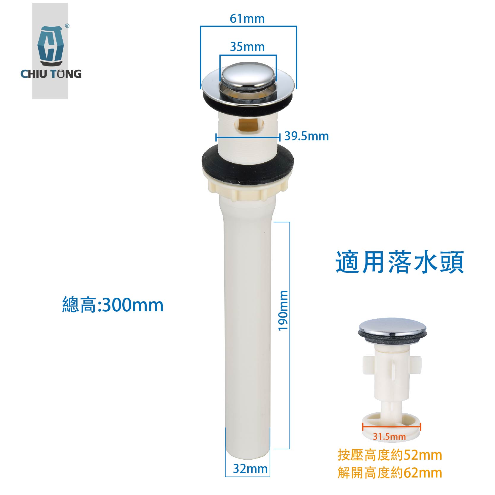 【710007】按壓式 ST面蓋排桿(B)-有溢水孔 總長30CM