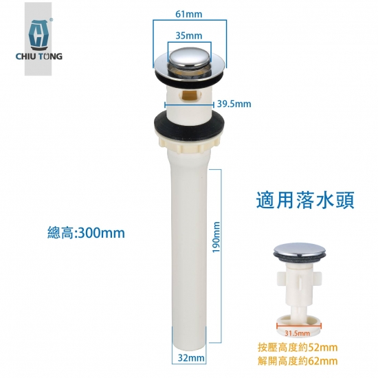 按壓式ST面蓋排桿為久統塑膠所生產,採工程級ABS塑膠材質,不銹鋼面蓋,耐熱、耐腐蝕,無須工具、安裝簡易,清洗方便、防蟲除臭,台灣製造,久統塑膠按壓式ST面蓋排桿提供您優質的居家用水