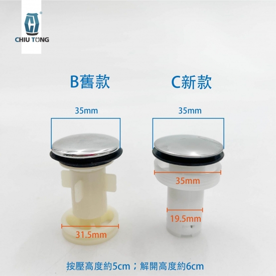 按壓式落水頭為久統塑膠所生產,採工程級ABS塑膠材質,耐熱、耐腐蝕,無須工具、安裝簡易,清洗方便、防蟲除臭,台灣製造。