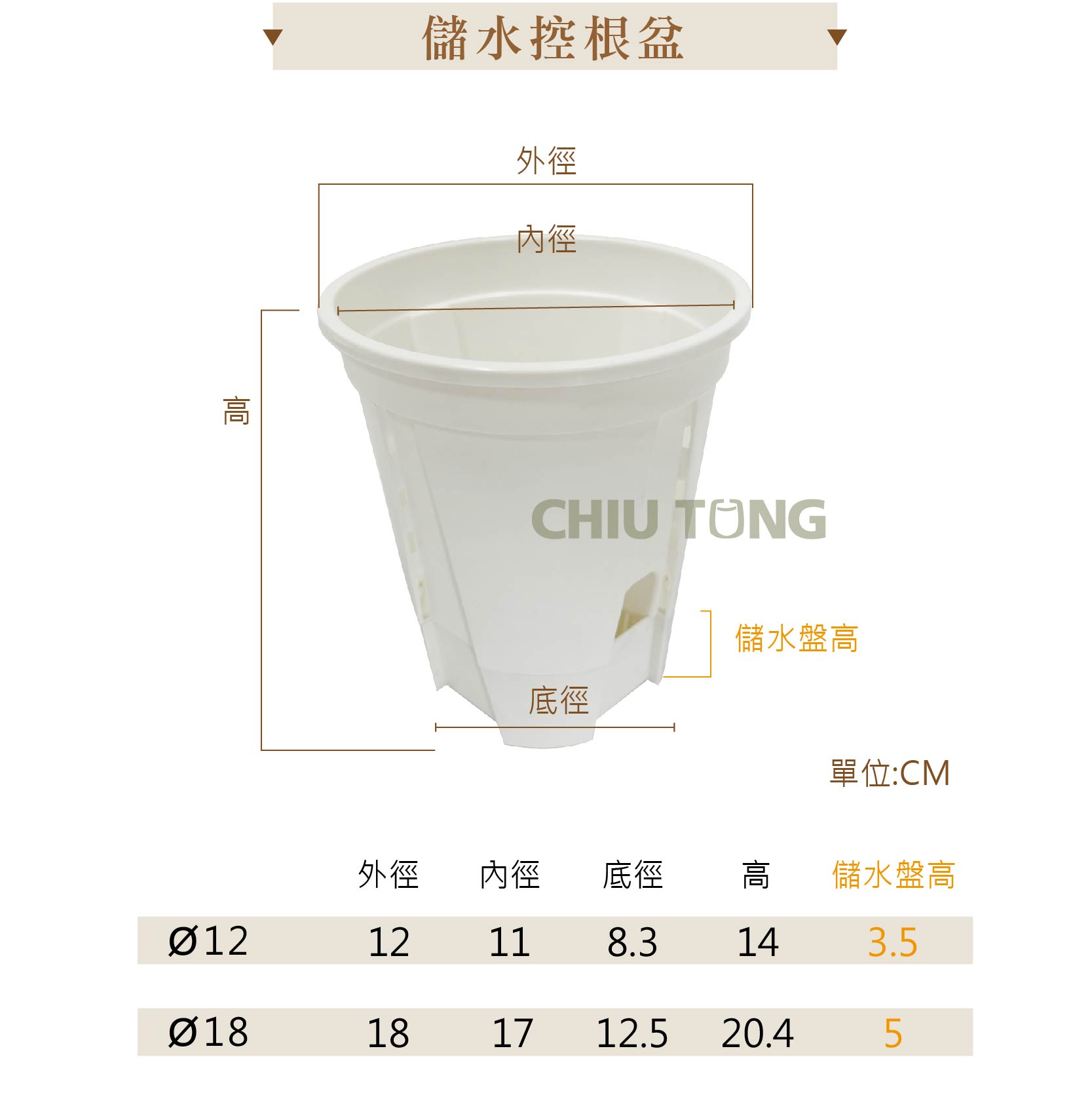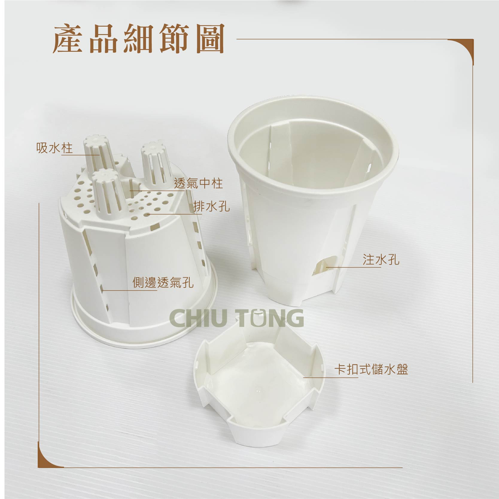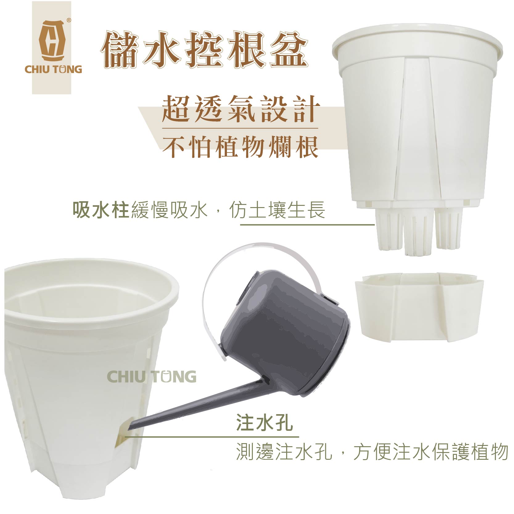 • 盆內空氣柱設計,增加植物呼吸空間,利於根莖發育,防止植物爛根。