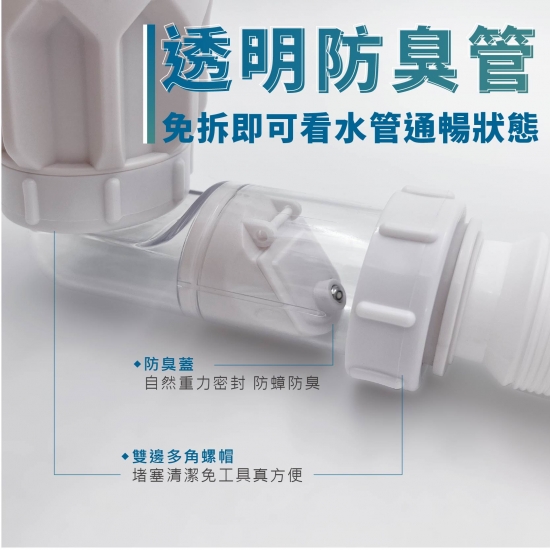 透明防臭管:可視水流狀態,防臭效果佳,方便清潔。