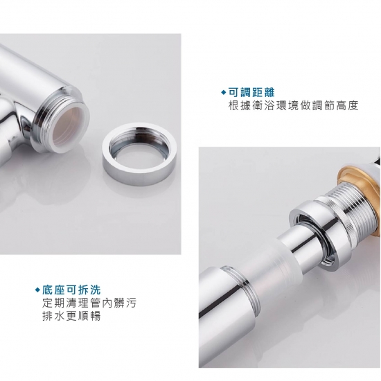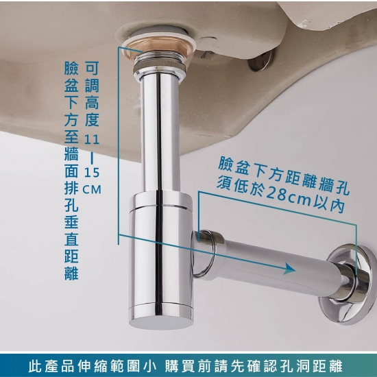 高度可調:適用面盆下方距離孔徑 11–15cm,安裝彈性高。