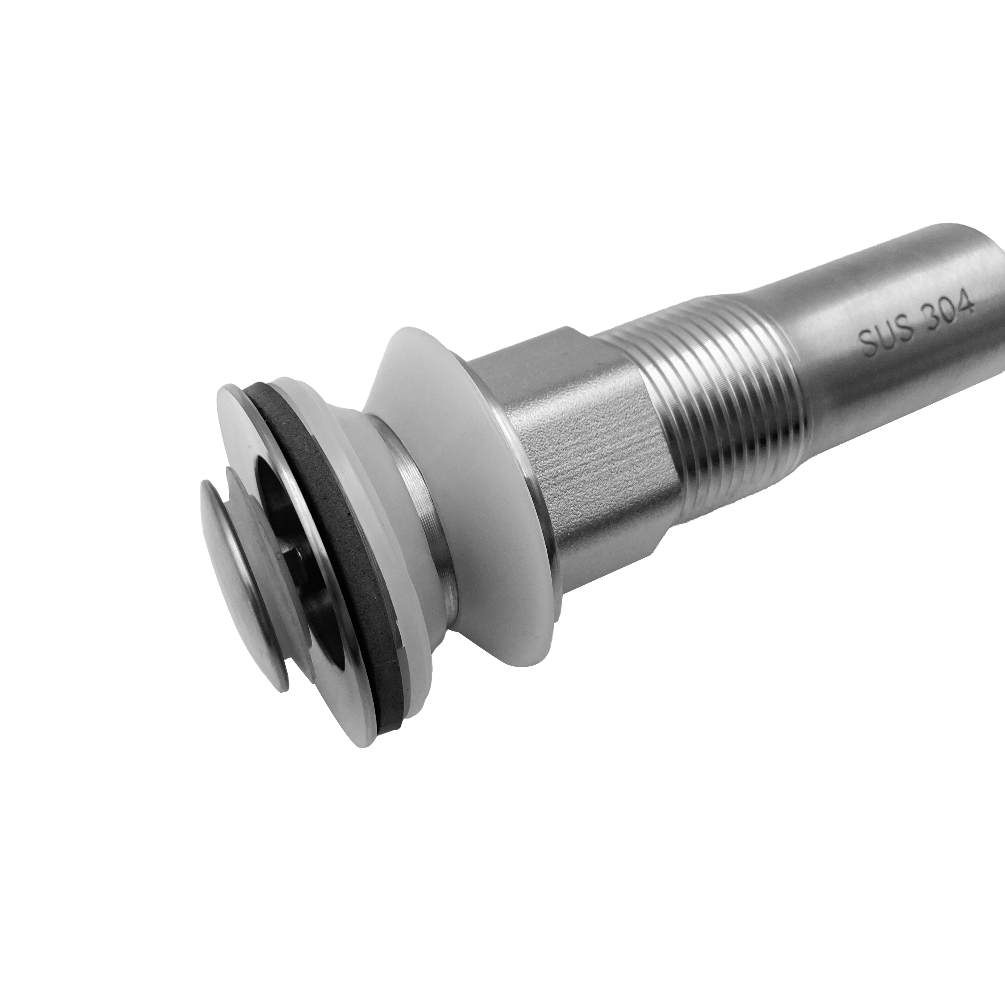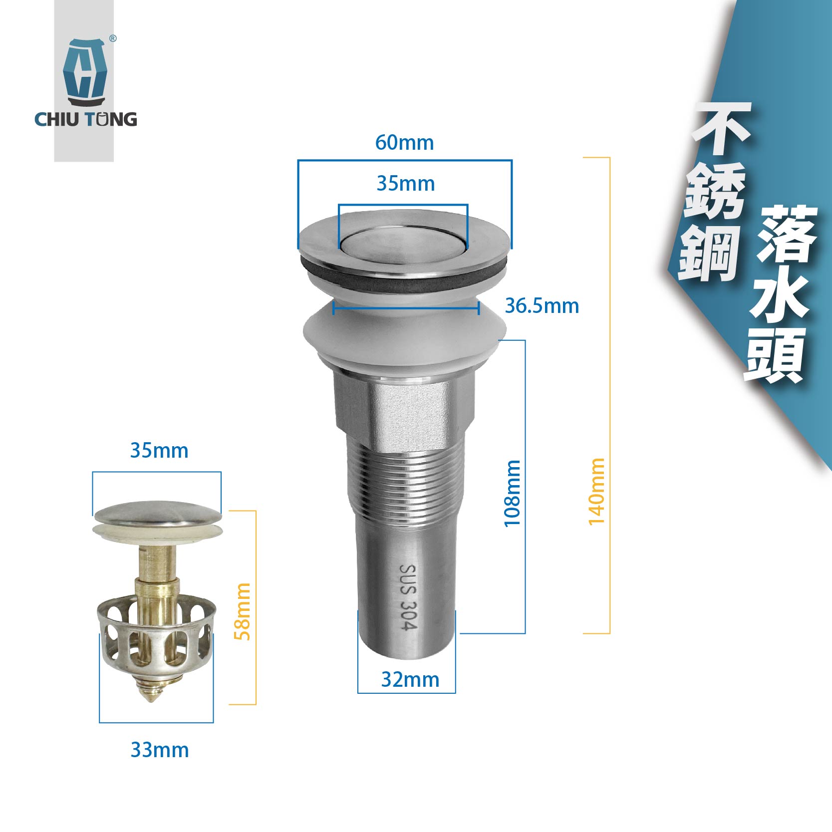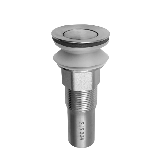 按壓式落水頭為久統塑膠所生產,採304不銹鋼材質,耐熱、耐腐蝕,無須工具、安裝簡易,清洗方便、防蟲除臭,台灣製造。