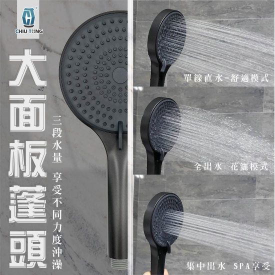 【701205】三段霧黑圓蓋大面版蓮蓬頭