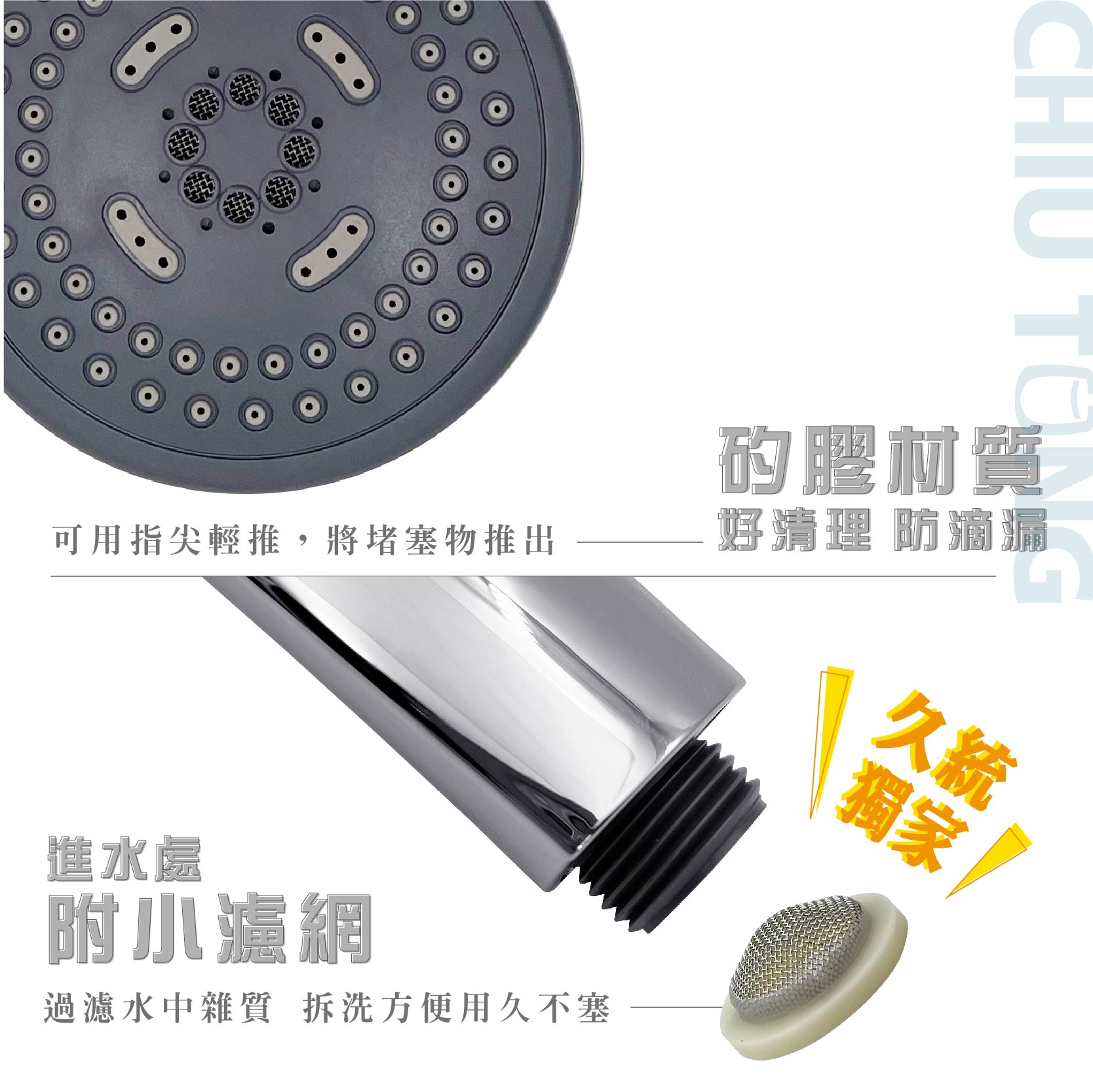 材質:ABS塑膠電鍍+矽膠(出水孔)