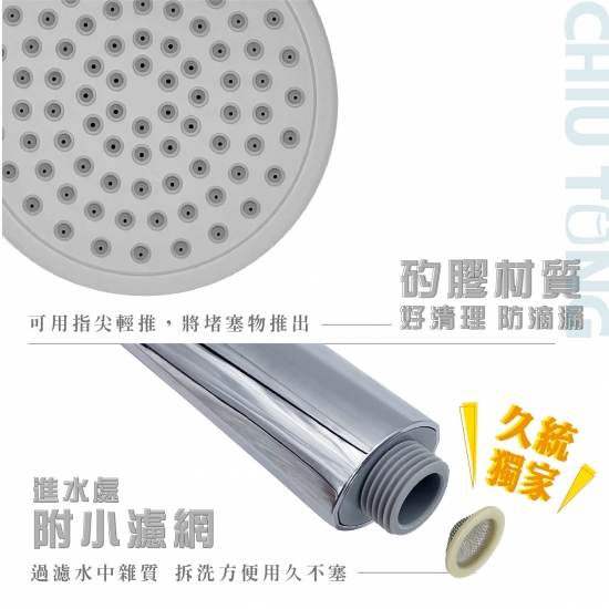 材質:ABS塑膠電鍍+矽膠(出水孔)