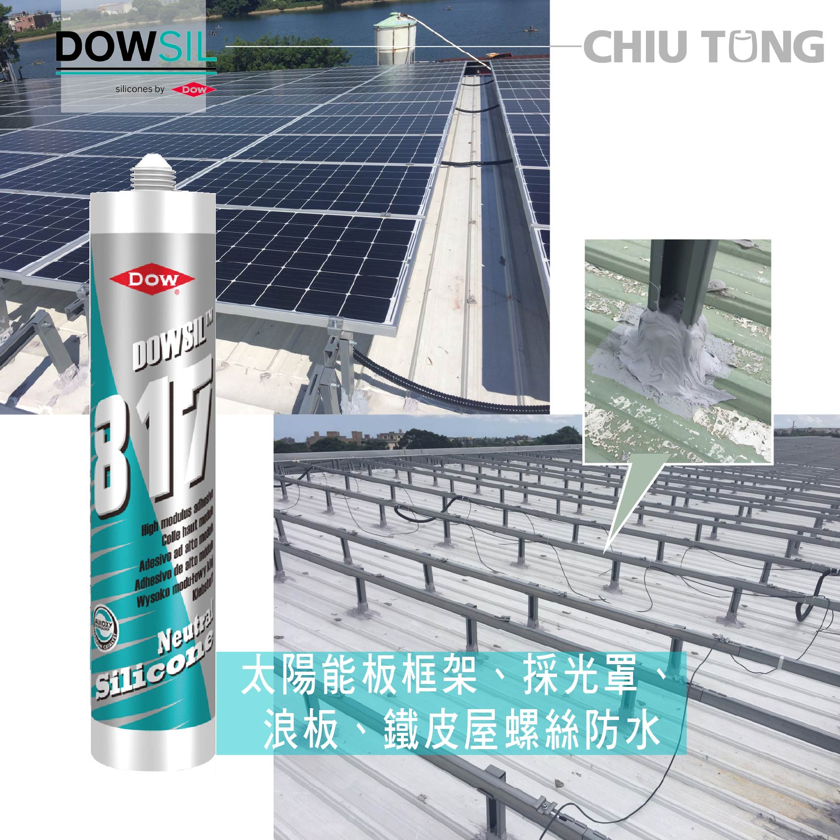 陶熙TM817高模量黏著劑是一款單組份硅酮密封膠,用於室內鏡子的裝配,塗層玻璃和金屬板片裝配。 DOWSIL™ Glass & Metal 玻璃金屬密封膠即屬此類建築物初階應用產品。若有更高強度的需求可使用結構強度高的DOWSIL™ 817高模量密封膠。徹底解決建物耐候性、建築品質穩定性問題。