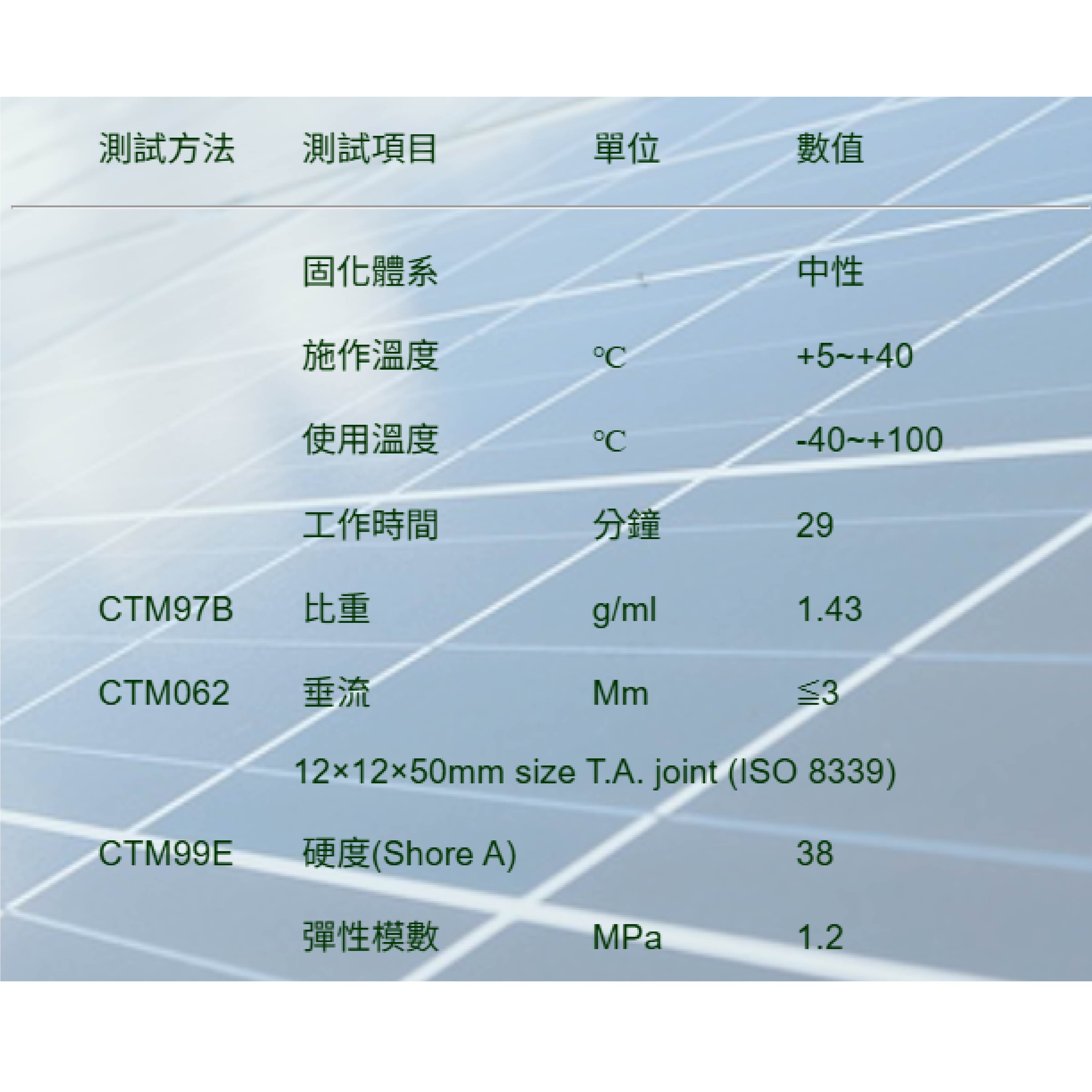 • 高模量密封膠以確保10年、20年太陽能面板運作順暢。