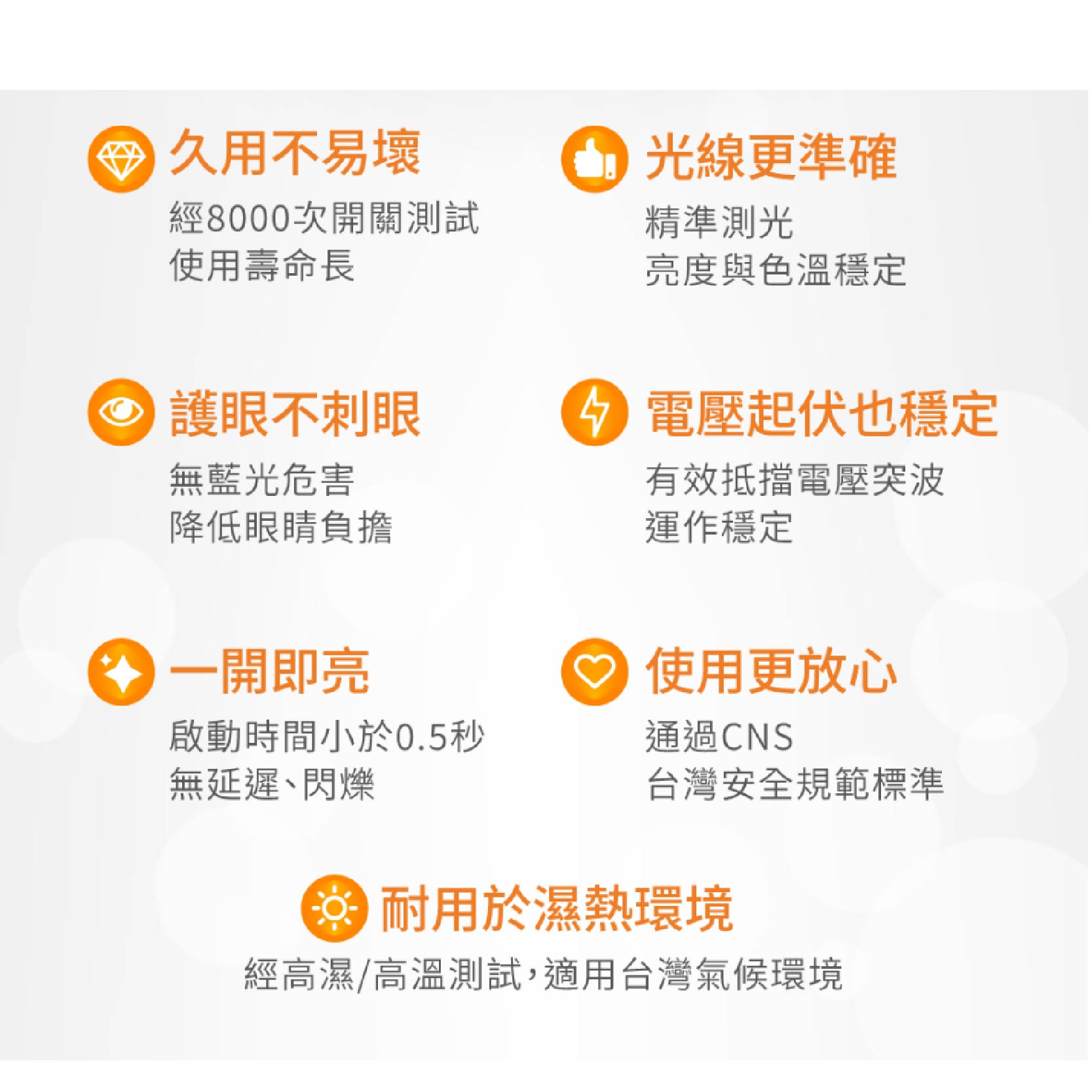 居家室內專用LED燈泡,一顆可抵3顆以上省電燈泡,通過台灣CNS品質認證安全更有保障,無藍光危害搭配均光、低眩光設計,保護你的靈魂之窗,點亮家中每個角落。
