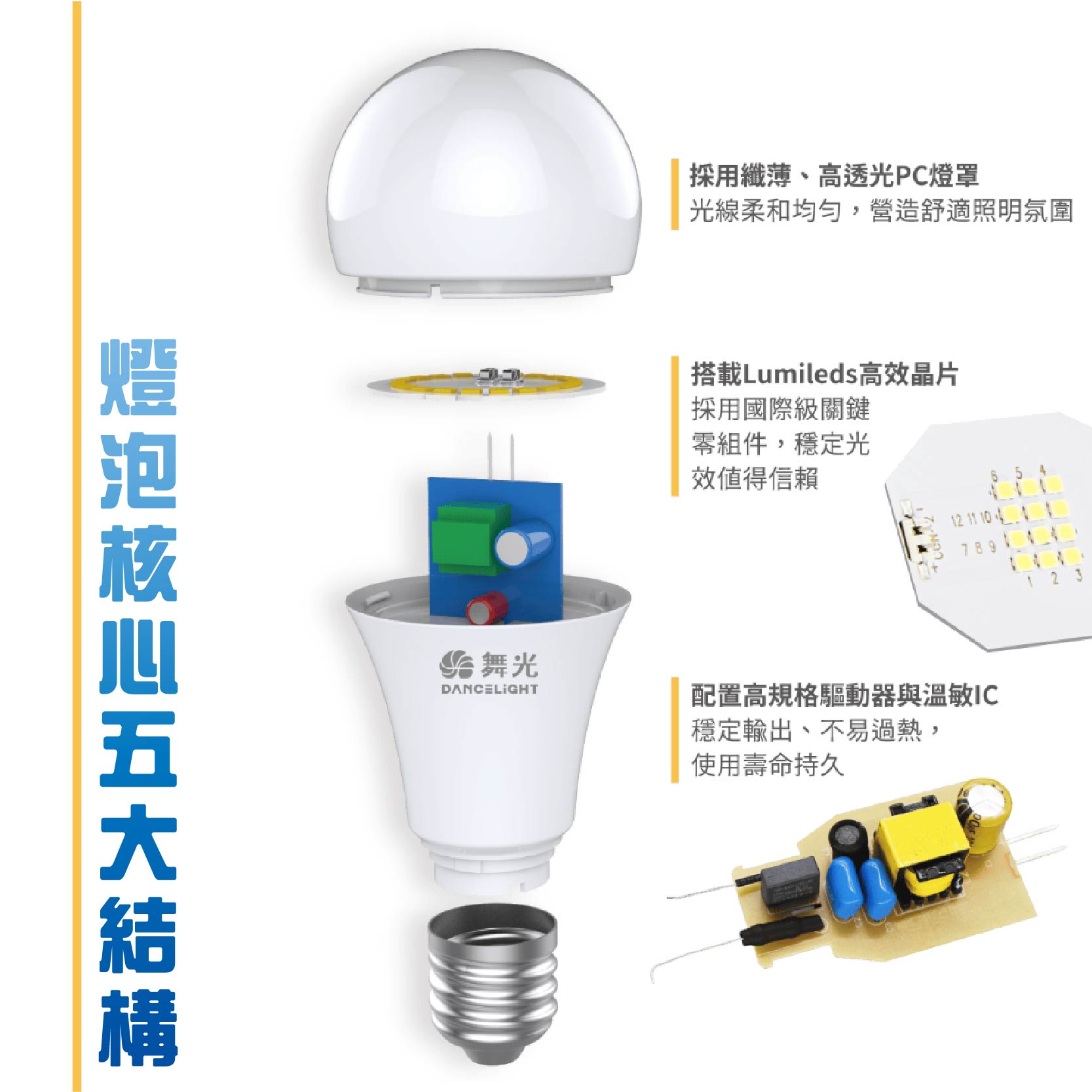 居家室內專用LED燈泡,一顆可抵3顆以上省電燈泡,通過台灣CNS品質認證安全更有保障,無藍光危害搭配均光、低眩光設計,保護你的靈魂之窗,點亮家中每個角落。