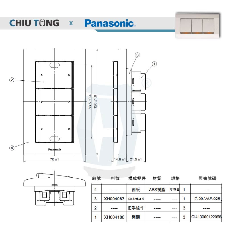 【981009】國際 星光3切三路螢光開關(整組) WTDFP5352