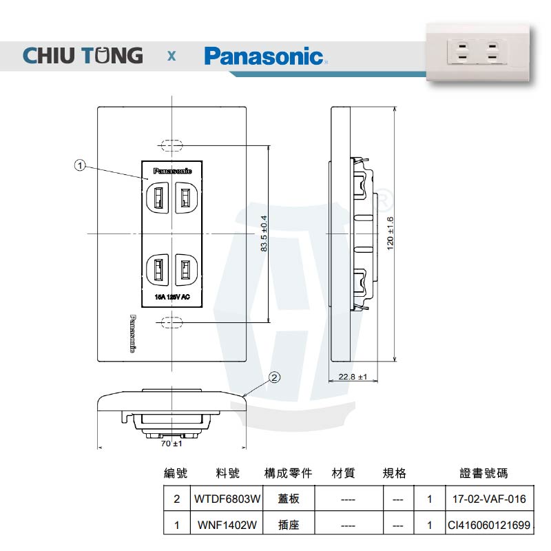 【981110】國際 星光雙插座含蓋板(整組) WTDFP1402