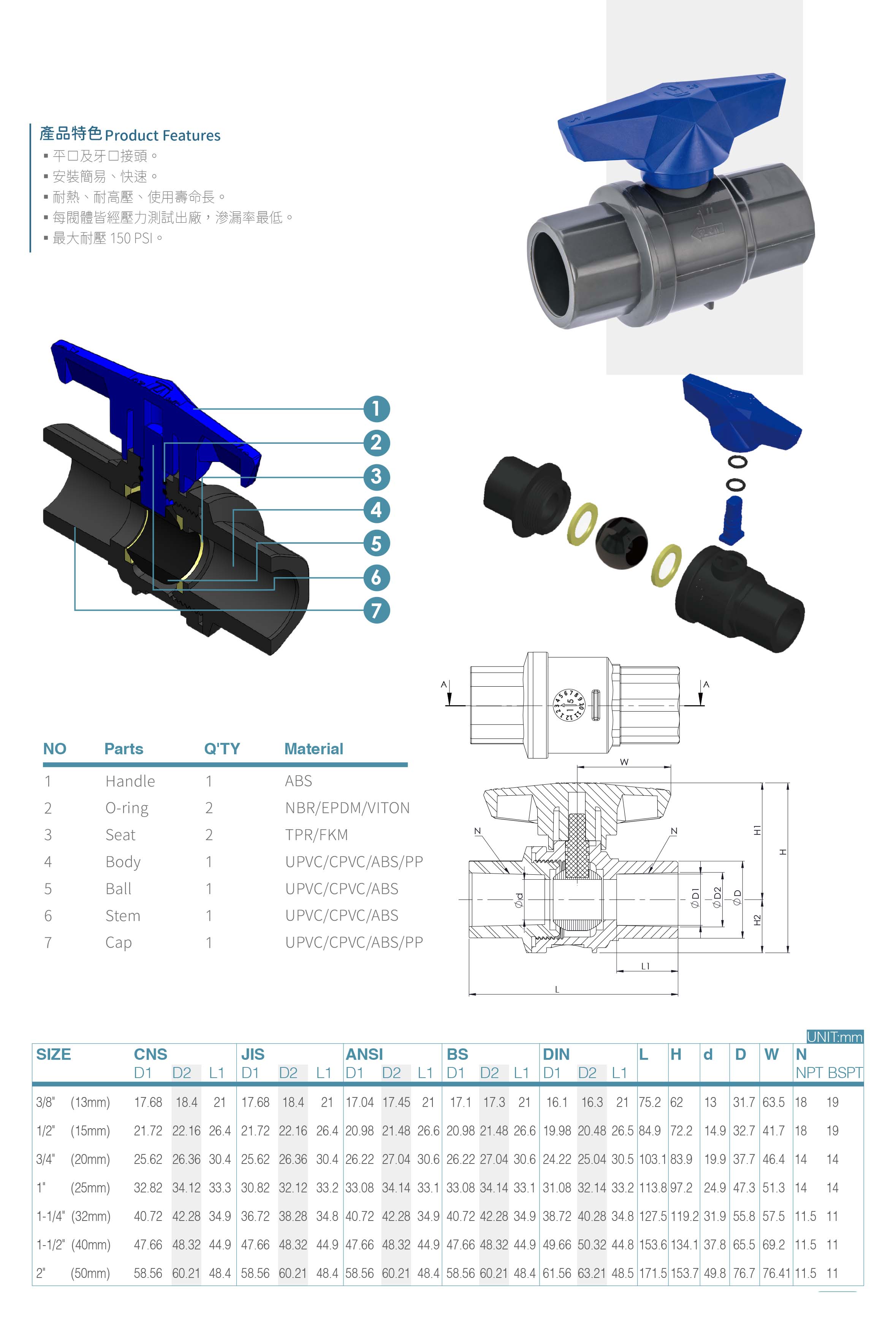 • 本球閥採非鉛系安定劑之硬質PVC材質,無重金屬、無毒、無味。